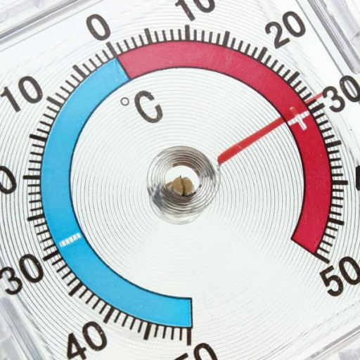 Termometr bimetaliczny w kształcie kwadratu wykonany z przezroczystego tworzywa. Skala nadrukowana jest bezpośrednio na plastiku. Odczytu temperatury można dokonać w stopniach Celsjusza. Na brzegach termometru znajdują się kawałki taśmy samoprzylepnej, co sprawia, że termometr po przymocowaniu jest bardzo stabilny.