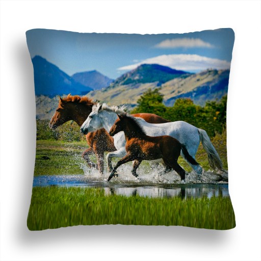 Poduszka dekoracyjna z motywem koni 40x40 cm.