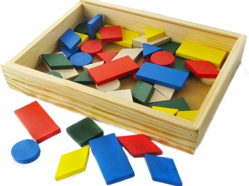 W zestawie znajduje się 50 kolorowych figur geometrycznych oraz