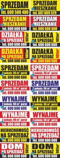 Baner reklamowy Sprzedam DOM/Działkę/Mieszkanie 150cm x 75cm gotowe wzory.