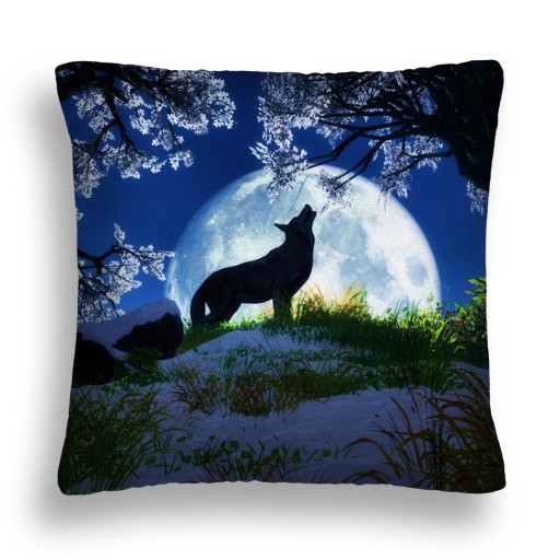 ПОДУШКА С ВОЛКОМ 07 ФАНТАЗИЯ ЛУННОЕ ДЕРЕВО ЦВЕТОК