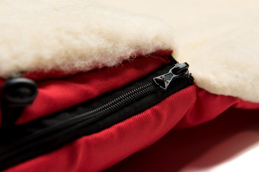 Z zewnątrz wyprodukowany jest z zaimpregnowanego materiału, który zabezpiecza przed wilgocią. Natomiast wewnątrz śpiworek wypełniony jest naturalną owczą wełną oraz dodatkowo ocieplony tzw. ovatą.