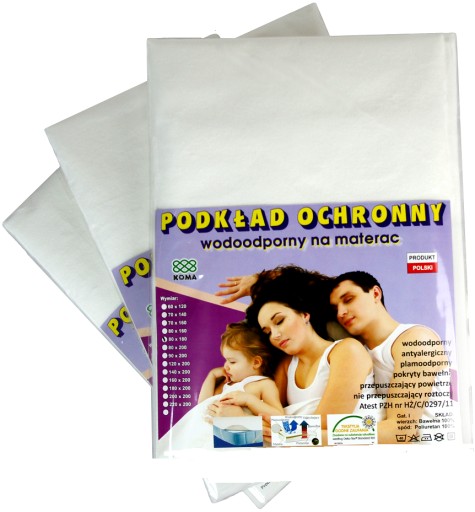 WYKONANIE: górna część ochraniacza wykonana jest z miękkiej białej froty, pod którą znajduje się specjalna, zatrzymująca płyny i przepuszczająca powietrze poliuretanowa membrana.