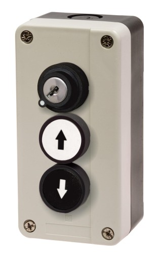 Kaseta sterownicza, z dwoma przyciskami - strzałki - góra/dół oraz włącznikiem na klucz.