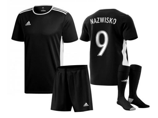 Strój piłkarski marki Adidas składający się z koszulki, spodenek