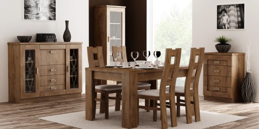 Kolekcja Tadeusz to szeroki asortyment brył wykonanych z precyzją w dwóch wariantach kolorystycznych: dąb lefkas lub dąb stuletni- pozwalający na zaaranżowanie salonu, jadalni i sypialni.