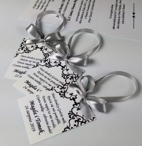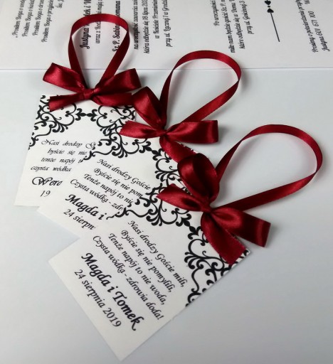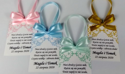 UWAGA!! Zawieszki wysyłane są do Państwa w formie gotowej do przywieszenia na butelkach (kokardki zawiązane, tasiemki przymocowane). Nic nie muszą Państwo sami ciąć, wiązać czy kleić.