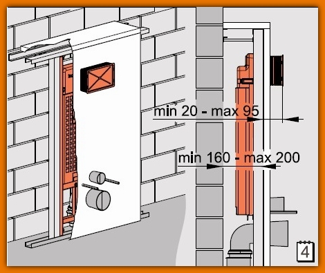 Podtynkowy system instalacyjny do suchej zabudowy (karton-gips). Stelaż do osadzania w konstrukcji płyt gipsowych. Konstrukcja ramy pozwala na zakotwiczenie w konstrukcji ściany gipsowej, lub na zainstalowanie przed ścianą. Jest to uniwersalny moduł do zawieszenia miski z rozstawem śrub 180 i 230 mm. Rama z teleskopowymi nogami pozwala ustawiać wysokość muszli klozetowej w zakresie 200 mm. Jakość ramy i jej wykończenie zapewniają długą żywotność. Zainstalowany moduł zakotwiczony do konstrukcji płyt gipsowych i podłogi ma odpowiednią wytrzymałość, nie ma potrzeby stosowania dodatkowych elementów wzmacniających.