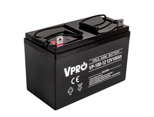 Akumulator z serii VPRO 100 Ah jest wykonany w technologii AGM (Absorbent Glass Mat) VRLA i głównie przeznaczony m.in.: do zastosowania w systemach zasilania awaryjnego (UPS, systemy automatyki), instalacjach solarnych oraz z przetwornicami napięcia.