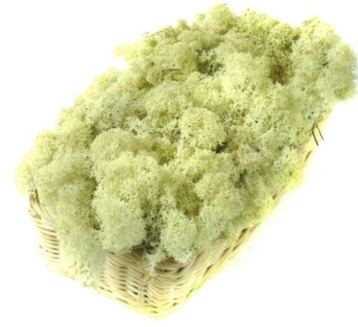 Kolorowy preparowany mech reniferowy ma zastosowanie w szeroko rozumianej florystyce, dekoratorstwie i architekturze.