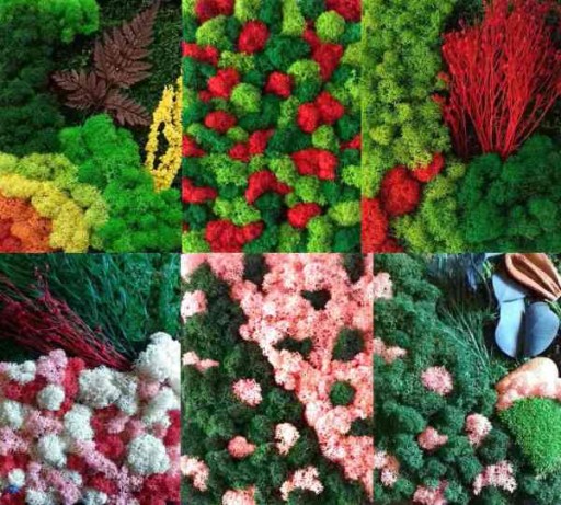 Cieszące się coraz większą popularnością ściany z mchu tak naprawdę „porasta” nie mech, a porost: chrobotek reniferowy (Cladonia ragniferina). Jest to niesamowity gatunek z pogranicza świata glonów i grzybów o drzewkowatym pokroju i zachowujący zielone, atrakcyjne wybarwienie, nawet pozostając bez kontaktu z podłożem. Te cechy zostały wykorzystane przy tworzeniu z owych porostów modułów, a nawet całych, zielonych powierzchni.