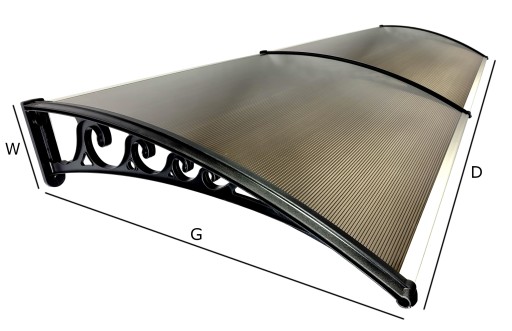 Pokrycie daszka stanowi poliwęglan komorowy o gr. 6 mm dostępny w kolorze: