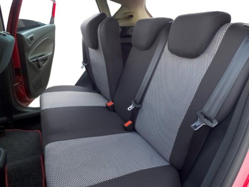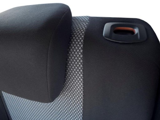 - boki i tył pokrowców wykończone grubą czarną dzianiną poliamidową (laminowana pianką i podszewką), pasy środkowe z wybranego materiału tapicerskiego (laminowane pianką i podszewką)