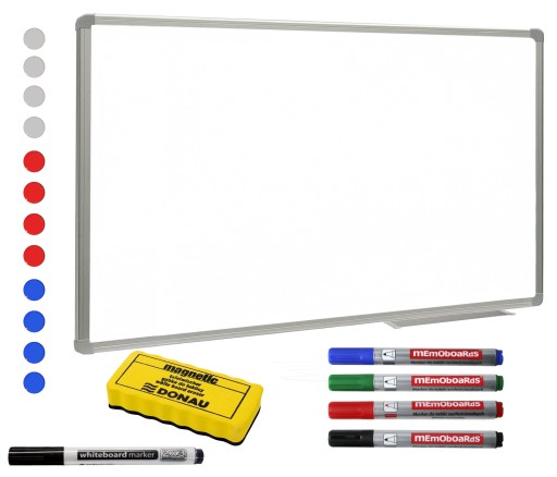 4 szt. markerów MemoBe, 9 szt. polskich, bardzo mocnych, powlekanych magnesów, gąbka magnetyczna Donau lub MemBe w zależności od dostępności