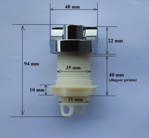- nakrętka dociskająca cały przycisk do blatu/rantu