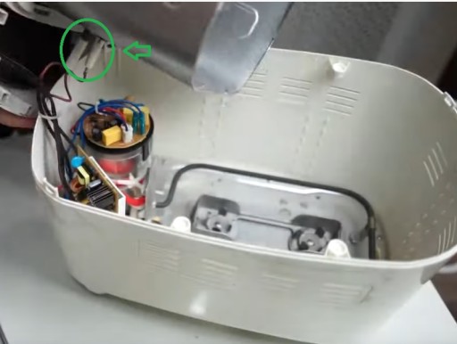 powykręcaj zaznaczone śrubki i wyciągnij cały mechanizm luzując przy tym główny kabel zasilający