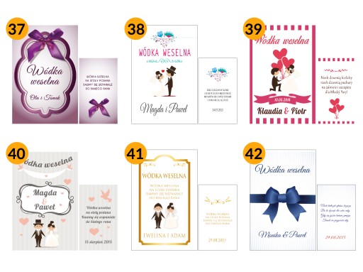 Przedmiotem aukcji jest zestaw 30 naklejek na WÓDKĘ WESELNĄ, do wyboru w obrębie jednego z dostępnych wzorów.
