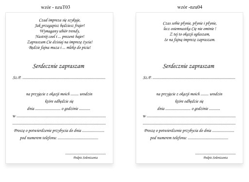 wzory tekstu zaproszenia są do wyboru na dole tej aukcji