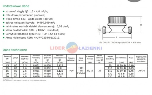 - Certyfikat Badania Typu MID: TCM 142-13-5009;