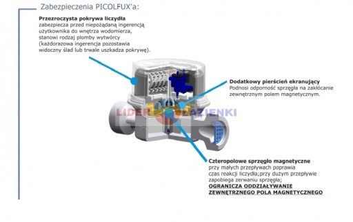 - zabezpieczenie antymagnetyczne: – czteropolowe sprzęgło, – pierścień ekranujący;