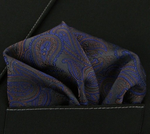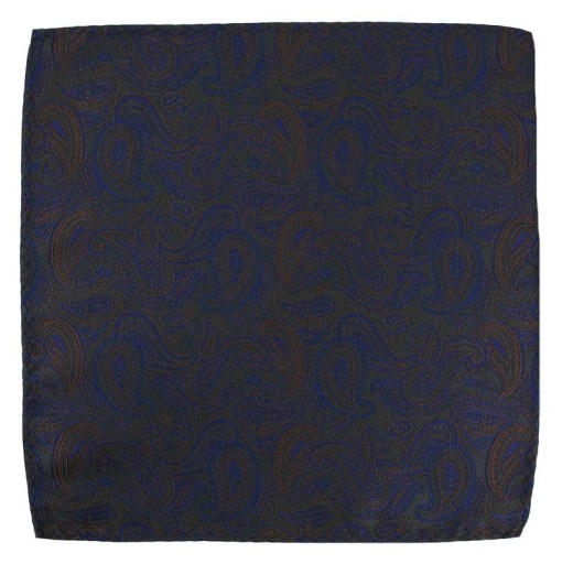 Elegancka Poszetka Męska - Alties - Wzór Paisley, Granatowo-Brązowa