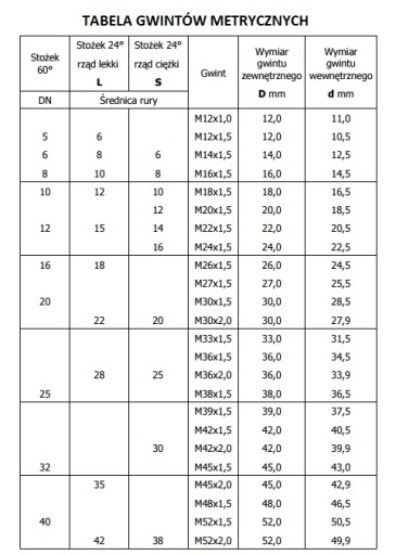 Przyłącze 1 metryczny gwint zewnętrzny cylindryczny