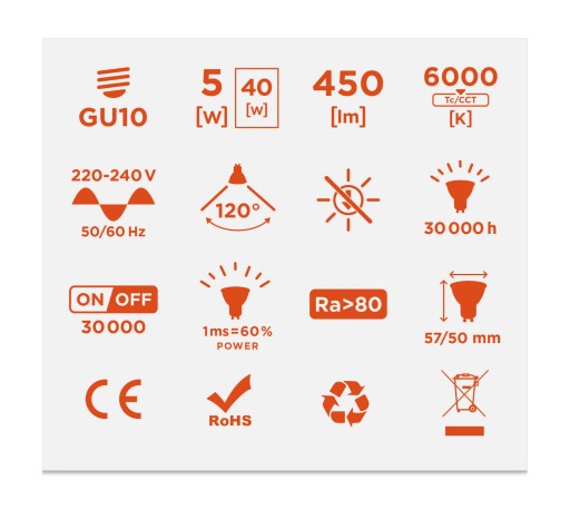 Żarówka LED GU10 5W pasuje do wszystkich standardowych modeli oprawek sufitowych, żarówka może być stosowana w łazienkach, biurach, pokojach, salonach, jako oświetlenie elewacji.