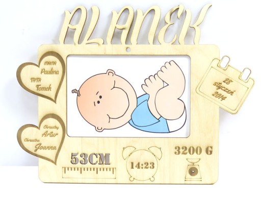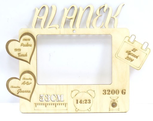 Ramkę o wymiarach zewnętrznych: szerokość: 29cm, wysokość około: 21 - 22cm - zależnie od podanego imienia.