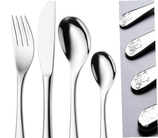 НАБОР ДЕТСКИХ НЕРЖАВЕЮЩИХ СТОЛОВЫХ ПРИБОРОВ С ГРАВИНОЙ ПОЛИРОВКИ
