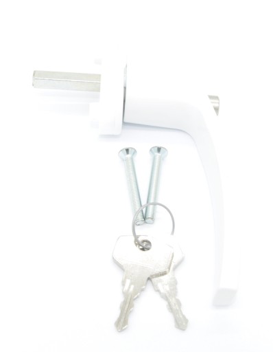 Opis: klamka wykonana jest z aluminium polakierowanego na biało (podstawa umożliwiająca przykręcenie wykonana jest z tworzywa). Klamka wyposażona jest w zamek umożliwiający zablokowanie klamki okna w pozycji zamkniętej. Blokada zabezpiecza okno przed niepowołanymi osobami z zewnątrz, nawet po zbiciu szyby a dodatkowo stanowi zabezpieczenie przed dziećmi, które zwłaszcza w wysokich budynkach mogłyby otworzyć okno. Montaż polega na odkręceniu starej klamki (2 wkręty zakryte zaślepką) i przykręceniu w miejsce starej - nowej klamki. Klamkę przykręca się dwoma wkrętami 5,0 x 40 mm.
