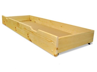 Szuflada 150 wykonana jest z naturalnego drewna sosnowego, co gwarantuje wytrzymałą i stabilną konstrukcję. Szuflada świetnie sprawdzi się zarówno w sypialni jak również w pokoju dziecięcym i nastolatka. Mebel pomoże praktycznie wykorzystać przestrzeń znajdującą się pod łóżkiem. Dzięki dużej pojemności pozwoli zorganizować pościele, zabawki itp. Szuflada posiada 4 kółka, które ułatwiają wysuwanie jej spod łóżka, nawet przy większym obciążeniu.