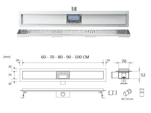 Odpływ liniowy SANITLINE długość 80cm syfon niski 52 mm