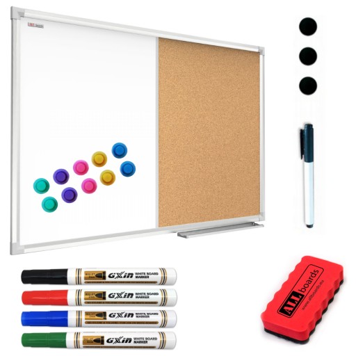 Tablica COMBI suchościeralno-magnetyczno korkowa 90x120 rama aluminiowa