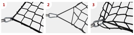 Siatka sprzedawana jest wraz z czterema karabińczykami montowanymi do fabrycznych zaczepów w aucie.