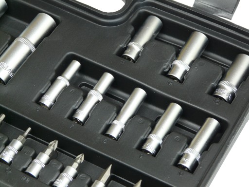 - nasadki 1/4" z bitami: Torx(T8,10,15,20,25,30), Imbus(3,4,5,6mm), PZ(1,2),PH(1,2), Płaskie(4,5.5,7mm)