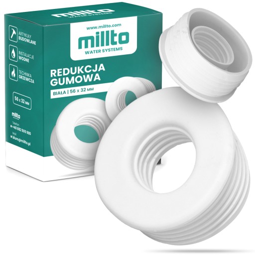 Redukcję marki Millto wykonano z gumy, dzięki czemu element jest szczelny i nie przepuszcza wody, a miejsce łączenia jest trwałe. Elastyczna konstrukcja sprawia, że redukcja dopasowuje się do drobnych nierówności powierzchni.