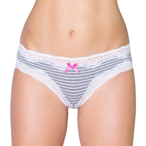 Figi damskie wykonane z bawełny. Wykończone delikatną koronką o motywie kwiatowym. Uroku figom dodaje różowa kokardka w pasie.Figi damskie, biodrówki „hipsters” – guma tego kroju znajduje się bezpośrednio na biodrach. Figi te posiadają szersze boki zasłaniające biodra. Umiarkowanie zabudowane na pośladkach. Nogawki nisko wykrojone. Projektowane z myślą o zapewnieniu maksymalnego komfortu.