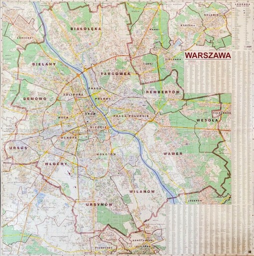 НАСТЕННАЯ КАРТА ВАРШАВЫ XXL / ПЛАН ГОРОДА 1:18 000