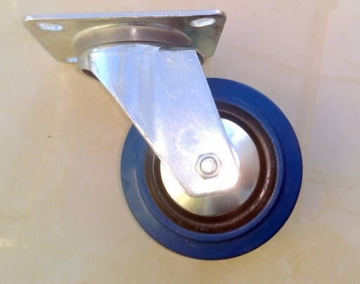 - bieżnik z niebieskiego kauczuku o wyjątkowej sprężystości, przylegającego do tarczy kółka wykonanego z czarnego poliamidu