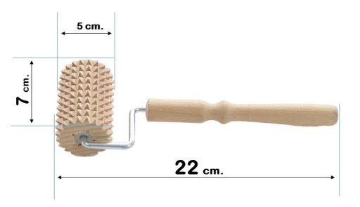 - MATERIAŁ : drewno bukowe + metalowy pręt łączący rolkę z rączką