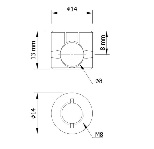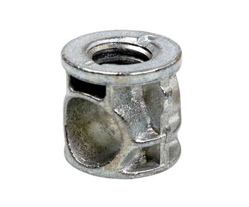 Złącze baryłkowe Ø 14 mm jest solidnym połączeniem meblowym przeznaczonym do montażu m.in. krzeseł, ław, szafek nocnych i innych drobnych mebli skrzyniowych. Połączenie jest przykręcane za pomocą gwintu metrycznego M6 + mufy (mufy stalowe lub tworzywowe należy dokupić do kompletu). Na zaczepie występuje otwór fasolkowy, który podczas kontrowania wkrętem dociskowym w baryłce zbliża ze sobą oba elementy i tworzy solidne połączenie, które może być montowane i demontowane wiele razy bez utraty jakości połączenia.