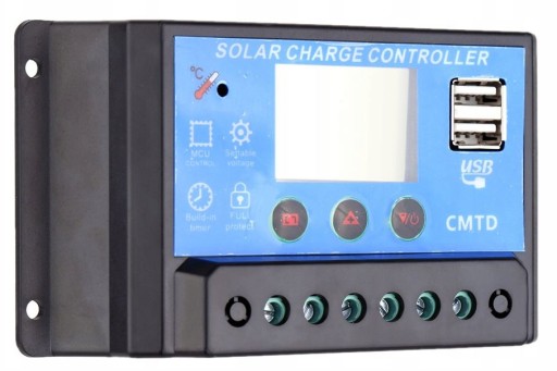 Kontroler przeznaczony do systemów 12 i 24 voltowych, zbudowany na mikrokontrolerze w oparciu o technologię PWM. Przełącza się automatycznie pomiędzy 12 i 24V po podłączeniu do akumulatorów. Posiada duży czytelny wyświetlacz LCD, na którym wyświetlane jest wiele parametrów pracy w tym m-in. prąd ładowania, co w przypadku prostszych urządzeń nie jest oczywiste.