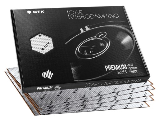 CTK Premium, to najbardziej zaawansowany samoklejący materiał antywibracyjny wykonany na bazie nowego kompozytu gumy butylowej, specjalistycznych polimerów i wzmacniającej przetłaczanej aluminiowej folii o grubości 100 mikrometrów (0,1 mm), charakteryzujący się wysoką skutecznością tłumienia drgań, dużą elastycznością montażową oraz bardzo wysoką lepkością do podłoża. Jednocześnie, w porównywalnym przedziale grubości i skuteczności tłumienia drgań (MLF), maty CTK Premium są najlżejszym tego rodzaju materiałem antywibracyjnym produkowanym w Europie. Dzięki temu, stosując cieńsze i lżejsze maty z serii Premium, można uzyskać efekt o podobnym poziomie redukcji drgań, jaki byłby osiągalny przy zastosowaniu innych materiałów o większej grubości i znacznie wyższej wadze. Materiały wibroakustyczne CTK z serii Premium, to produkty dedykowane przede wszystkim dla profesjonalnych instalatorów sprzętu car audio, renomowanych firm wyciszających pojazdy oraz najbardziej wymagających klientów, którzy są skłonni zapłacić nieco więcej za najwyższą jakość, skuteczność i komfort.