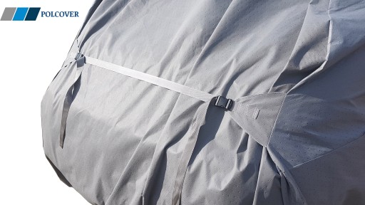 W standardzie pokrowiec wyposażony jest w dwa rodzaje mocowań - pas u dołu naokoło pokrowca oraz pas poziomy z przodu opinający pokrowiec na długość, dzięki czemu jest on doskonale zabezpieczony przed wiatrem.