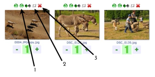 Każde zdjęcie możesz wydrukować jeden lub więcej razy. Pod zdjęciami plusem i minusem wybierasz ilość. W lewym górnym rogu podane jest ile zdjęć jest już wybranych.