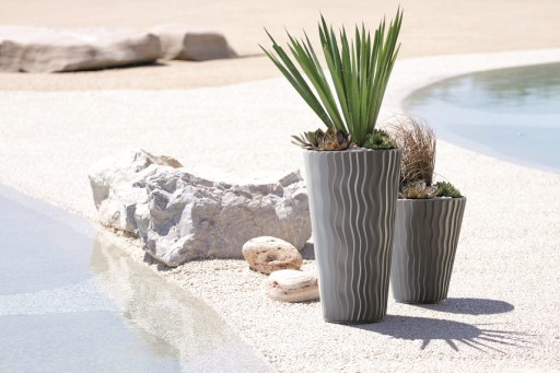 Nowa wielosezonowa mrozoodporna kolekcja doniczek SANDY firmy Prosperplast, stworzona z myślą o harmonijnym i atrakcyjnym krajobrazie,łącząca atmosferę i komfort, funkcjonalność i design.To wyjątkowo dekoracyjne donice,inspirowane ręcznie modelowaną tradycyjną ceramiką o powierzchni uszlachetnionej łagodnie falującymi pionowymi żłobieniami,uformowanymi na wzór pustynnego piachu.Są ukoronowaniem publicznej strefy wypoczynkowej,otoczenia hoteli i rezydencji.Stanowią doskonałe uzupełnienie aranżacji tarasów,ogrodów zimowych i tak popularnych patio.Wykazują też zwiększoną wytrzymałość na działanie promieni słonecznych i niskich temperatur oraz dużą odporność na uszkodzenia mechaniczne.Wykonane są z wysokiej jakości tworzywa sztucznego (metodą rozdmuchu),odporne na pęknięcia,stłuczenia,złamania.W zestawie praktyczny wkład pozwalający zmniejszyć ilość ziemi.Doskonale nadają się do wnętrz jak i na zewnątrz.Występują w czterech kolorach: biały,antracytowy,mocca(beżowy),oraz szary kamienny.