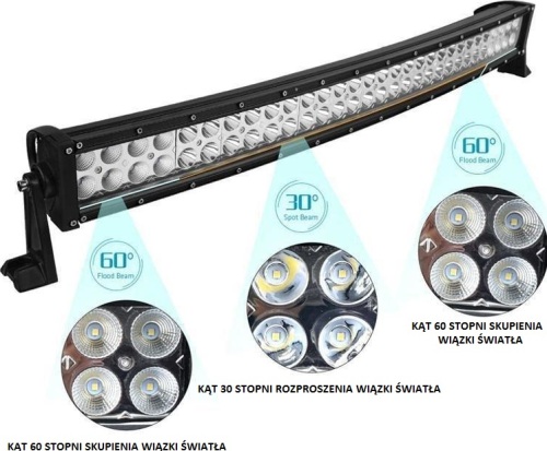 Posiada dwa rodzaje diod LED, środkowe świecą światłem skupionym, natomiast boczne światłem rozproszonym doświetlając boki.