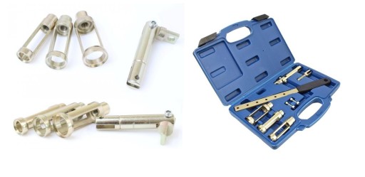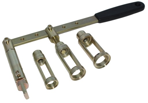 Dźwignia do ściskania sprężyn zaworowych z zestawem trzech różnych końcówek montażowych. Przyrząd znajduje zastosowanie w silnikach 8V, 12V ,16V, 24V, 30V.Przyrząd posiada regulacje wysokości oraz szerokości nacisku.Kieliszki posiadają stożki nacisku na miseczkę.