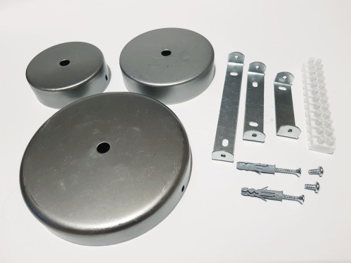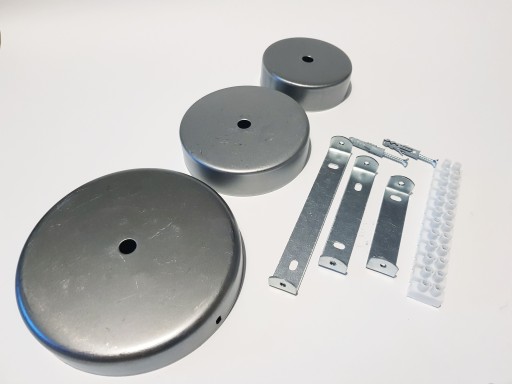 Kupując jeden produkt na tej aukcji dostajesz jedną podsufitkę ze surowej stali o średnicy 18cm, komplet do montażu oraz kostkę elektryczną, wszystkie inne oprawki, uchwyty itd służ tylko wizualizacji jak podsufitki mogą wyglądać w kompozycji.