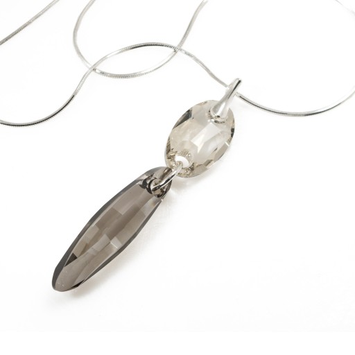 Elegancki naszyjnik z oryginalnych kryształów Swarovski. Srebrny łańcuszek o długości 42 z przywieszoną częścią ozdobną o długości 55mm. Zawieszkę można zdjąć z łańcuszka i używać w innej kombinacji.